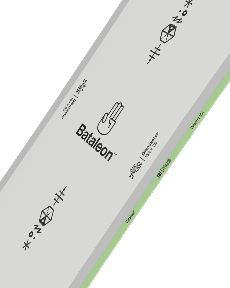 The Disaster blends innovative tech with hard-as-nails construction for a jib deck that can attack anything in its path. It features our most relaxed camber and a soft flex so it feels chill on the run in and is easy to press, and even floats better than most other boards on the market thanks to the 3D SideKick™ tips, which means you can plunder some pow if the park’s snowed under.