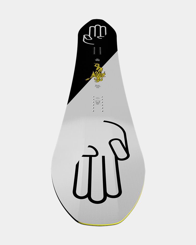 Chucking spins in deep snow shouldn’t be this easy… should it? The Magic Carpet offers outrageous float in either direction thanks to a huge nose and tail featuring pronounced uplift. Mow down the sidecountry, butter it up on your favorite powder face or build yourself a cheese wedge and send it to the moon. This revolutionary 3D shape is so much fun you’ll feel like you’ve used a cheat code.