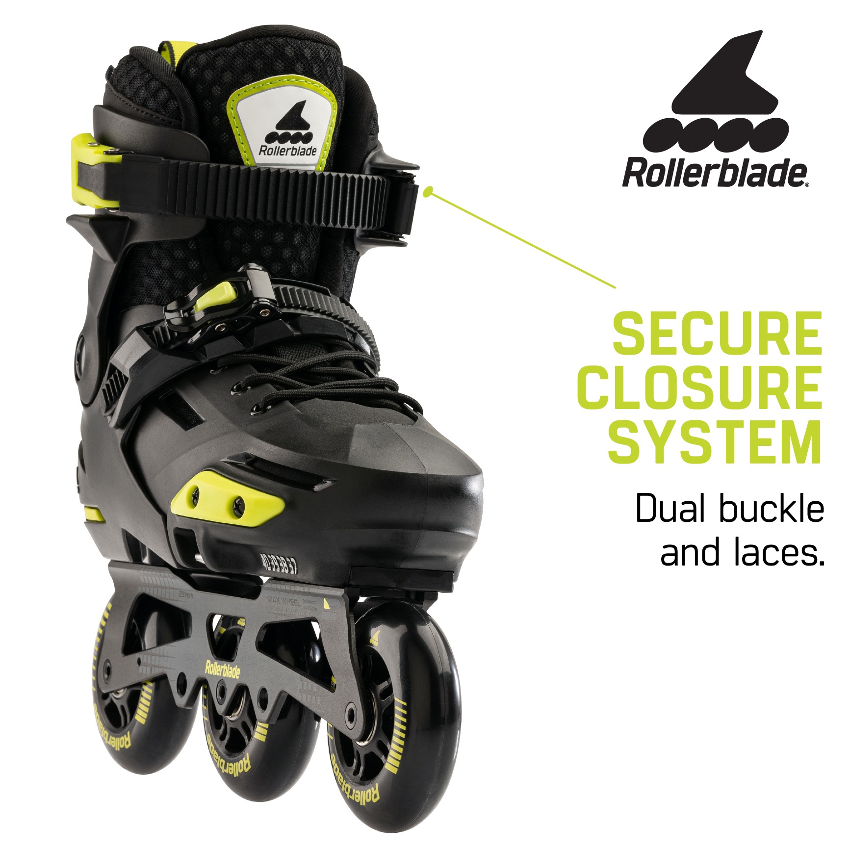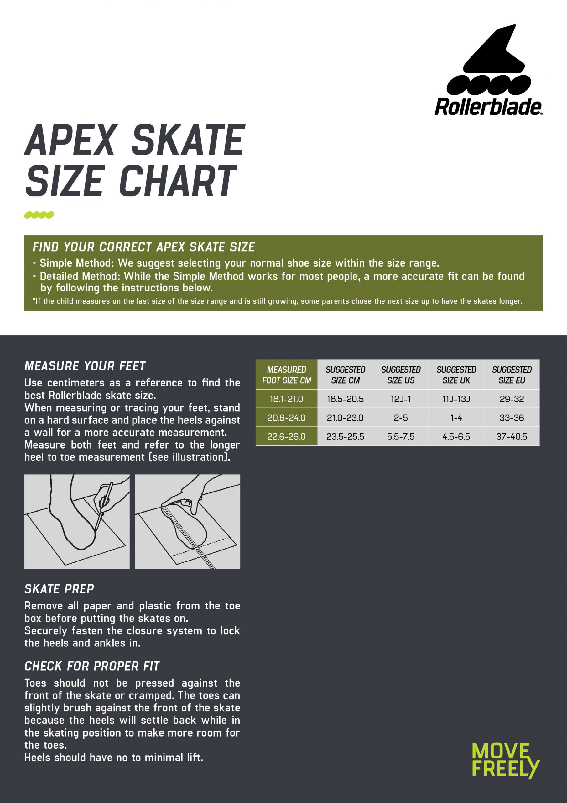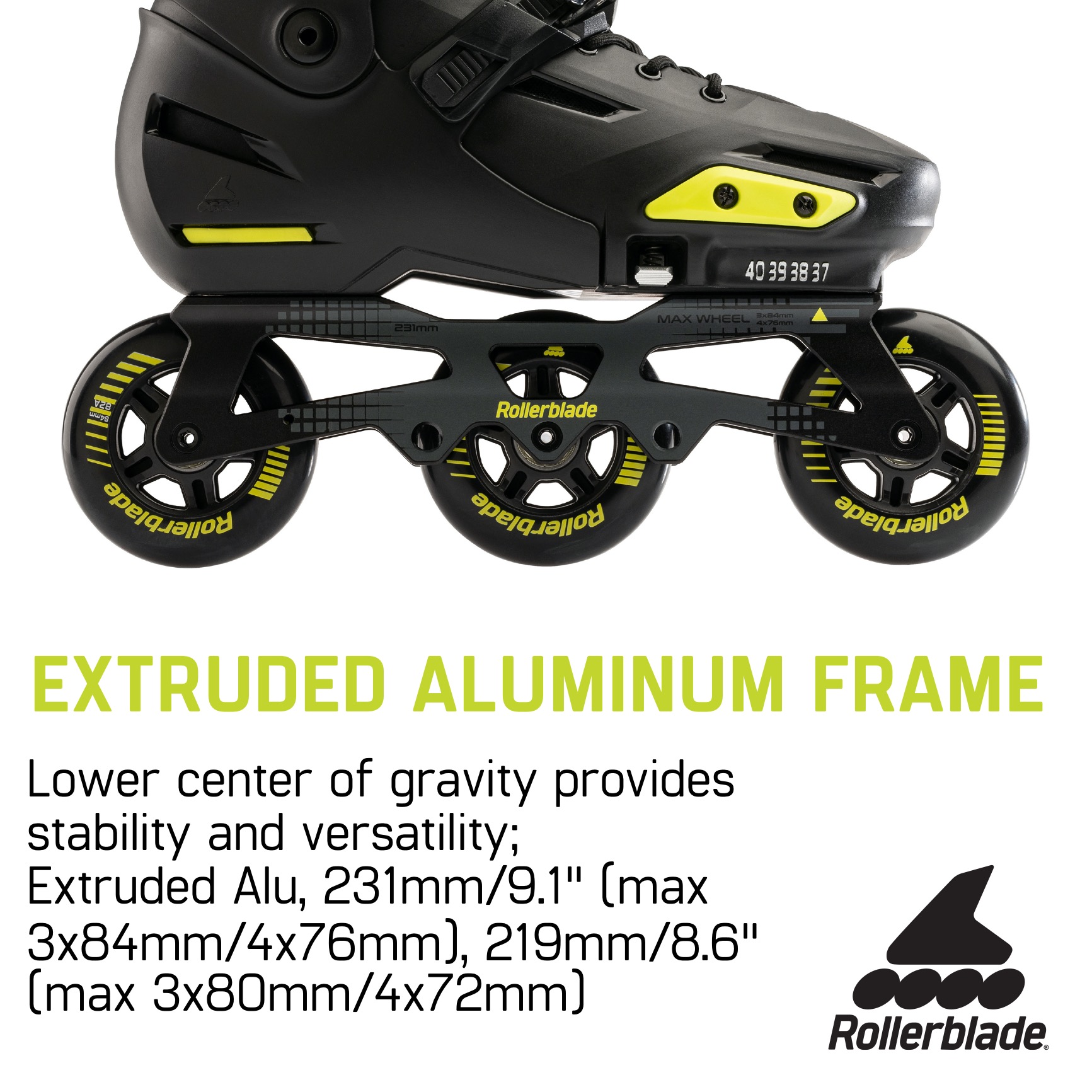 IDEAL WHEEL AND FRAME SIZE COMBINATION – Specific wheel size per skate size: Rollerblade 3x84mm/82A (235), 3x80mm/82A (210),3x76mm/82A (185); SG7 bearings